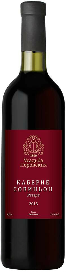 Красное сухое вино Усадьба Перовских Каберне Совиньон резерв производится из одноимённого винограда, произрастающего на землях Бельбекской долины.